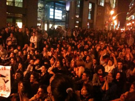 Tercero: Unos 300 indignados del 15-M que esta noche estaban reunidos en asamblea en la Puerta del Sol han decidido volver a las inmediaciones del Congreso a protestar por los incidentes de esta mañana en Valencia.