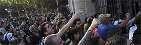 El despliegue policial está impidiendo el boicot al debate de los Presupuestos. Unos 2.000 'indignados' se han dispuesto a lo largo de todo el perímetro del parque de la Ciutadella -en el que se inscribe el Parlament-, pero las estrategia policial ha posibilitado el acceso de los parlamentarios a la cámara para su asistencia al pleno. Galeria de Fotos